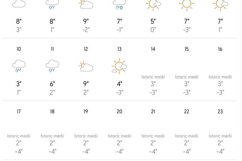 Următoarea zăpadă, potrivit meteorologilor Accuweather, ar cădea abia pe data de 6 decembrie.